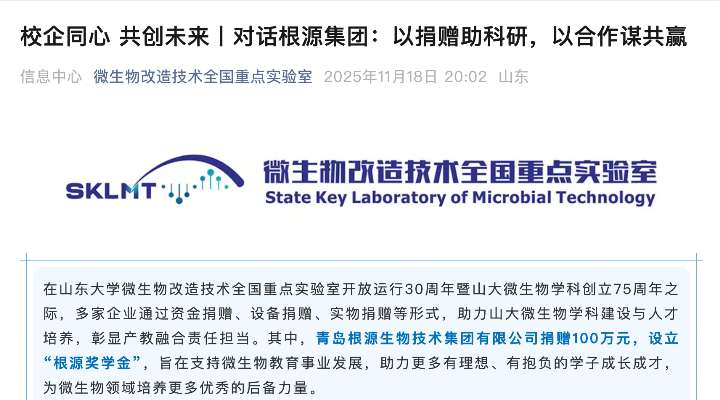 青島根源生物集團(tuán)是一家以微生物為核心,聚焦微生態(tài)制劑、酶制劑和生物原料三大生物類(lèi)產(chǎn)品和系統(tǒng)解決方案的綜合性集團(tuán)公司,集團(tuán)總部位于青島。